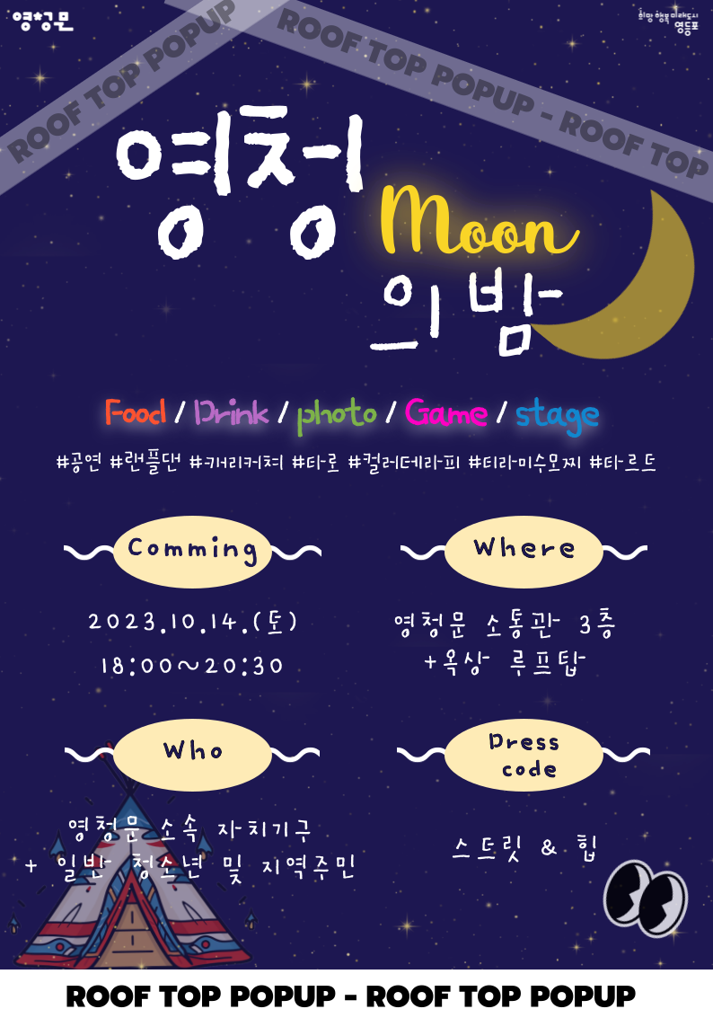 가을밤에 우리 함께 만나요~ 루프탑에서 친구들과 함께 힐링타임도 갖고, 맛있는 간식도 먹고, 동아리 공연도 보고!
