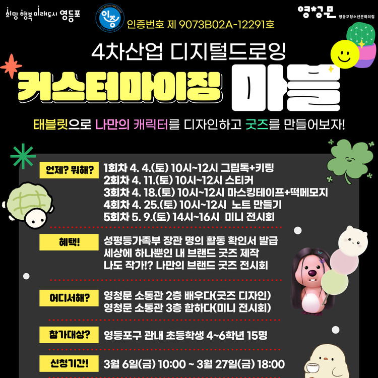 ◆ 문의 : 영등포청소년문화의집 청소년사업팀 김길록 02-836-2145