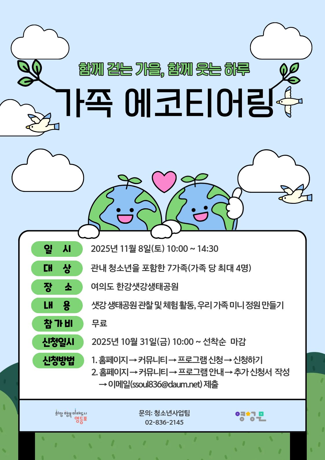- 집결 장소 : 여의도 한강샛강생태공원 내 '여의샛강생태체험관 ' 2층