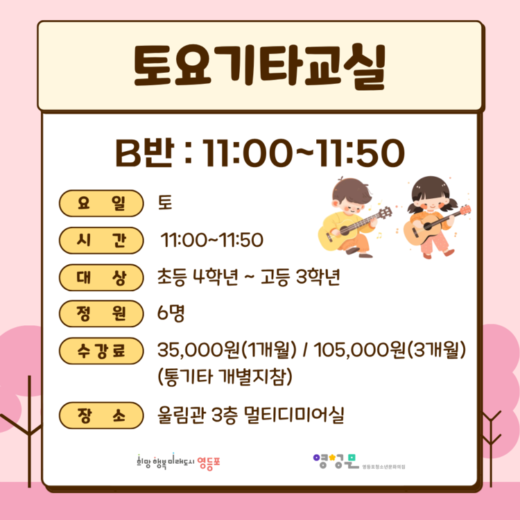 ▶ 수강료 : 35,000원(1개월), 70,000원(2개월), 105,000(3개월)