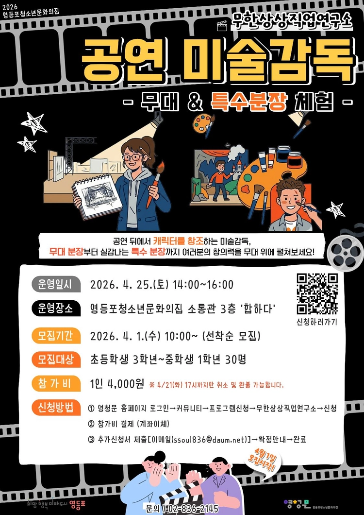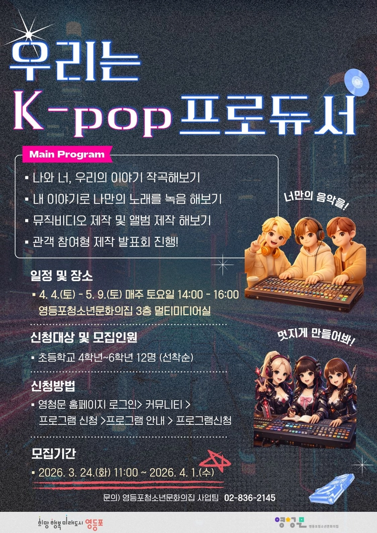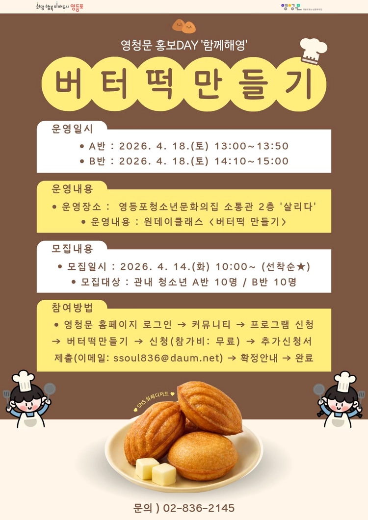 서울특별시 영등포구 영등포로64길 15(신길동)문의전화 : 02-836-2145 l FAX : 02-836-6860 l 이메일 : ssoul836@daum.net영등포청소년문화의집 All Rights Reserved.